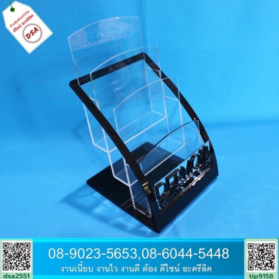 รับทำอะคริลิคใส่โบรชัวร์ กล่องใส่โบรชัวร์อะคริลิคใส ผลิตจากอะคริลิคแท้ ใส ทนทาน ช่วยให้โบรชัวร์ แผ่นพับของคุณตั้งวางได้อย่างสวยงาม น่าหยิบอ่าน มีกล่องใส่โบรชัวร์ให้คุณเลือกได้หลายลักษณะ ไม่ว่าจะเป็นกล่องใส่โบรชัวร์สำหรับตั้งโต๊ะ กล่องใส่โบรชัวร์สำหรับติดผนัง เพื่อแจกโบรชัวร์ แผ่นพับ ป้ายโฆษณาต่างๆ เพื่อการทำประชาสัมพันธ์ หรือโปรโมชั่นของร้านคุณมีให้เลือกทั้งแนวตั้งและแนวนอน สามารถสั่งผลิตได้หลากหลายสีที่ต้องการ Line : dsa2551 Line : tip9158